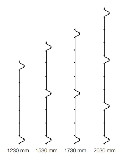 - Tillgängliga höjder: 1030 / 1230 / 1530 / 1730 / 2030 / 2230 / 2430 mm