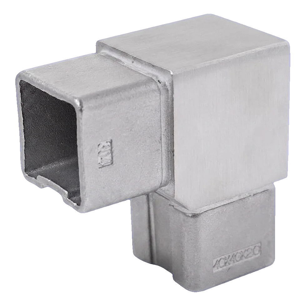 90° vinkel för balustradprofil 40x40 mm – rostfritt stål AISI304, satinfinish