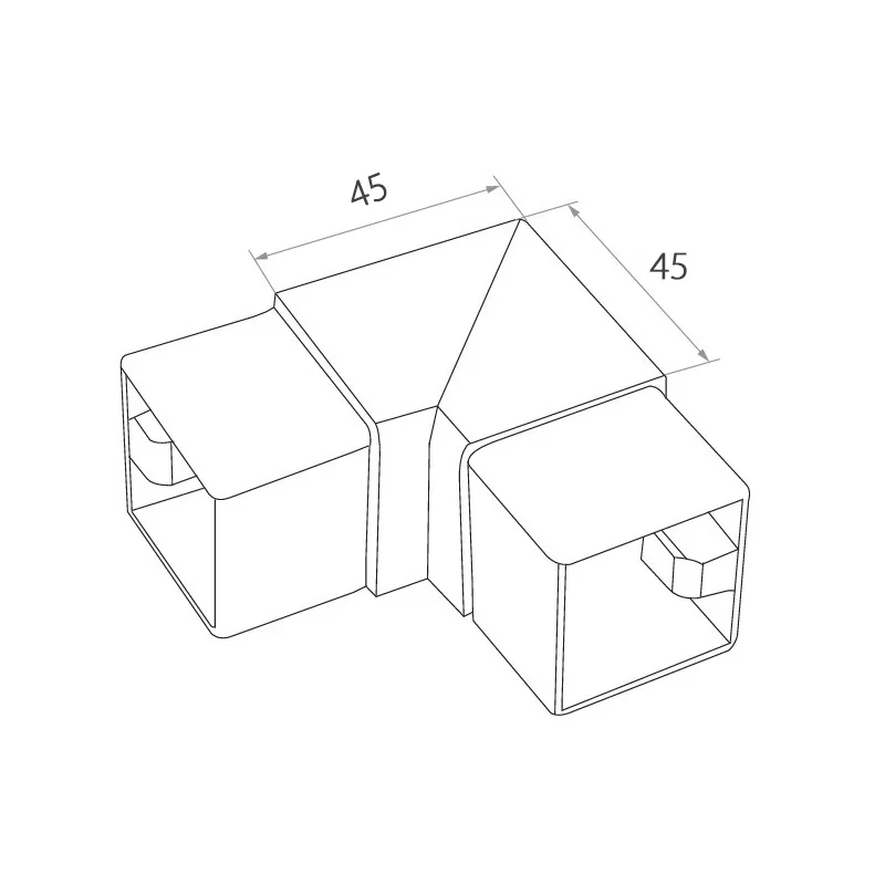 90° vinkel är en precision hörnkoppling avsedd för byggnation av glasbalustrader i system med kvadratiska profiler 40x40 mm. Tillverkad av rostfritt stål AISI304 med satinfinish på ytan, ger den en estetisk och hållbar förbindelse av två profiler i rät vinkel. Genom limmat montage (inklimt i profilen) får du en osynlig, ren förbindelse utan skruvar och monteringshål — idealisk lösning för moderna glasbalustrader i kommersiella och bostadsobjekt.