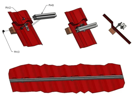 Monteringsprofilen är lämplig för montering av solpaneler med hjälp av mitt- och ändklämmor. Klämmorna fästs i profilens övre spårkanal. Den nedre spårkanalen möjliggör montering av profilen på adaptrar, takkrokar eller trianglar.