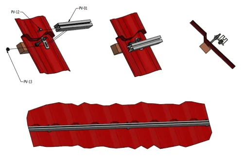Monteringsprofilen är lämplig för montering av solpaneler med hjälp av mellan- och ändklämmor. Klämmorna fästs i profilens övre skenkanalerna. Den nedre skenkanalen möjliggör montering av profilen på adaptrar, takkrokar eller trianglar.