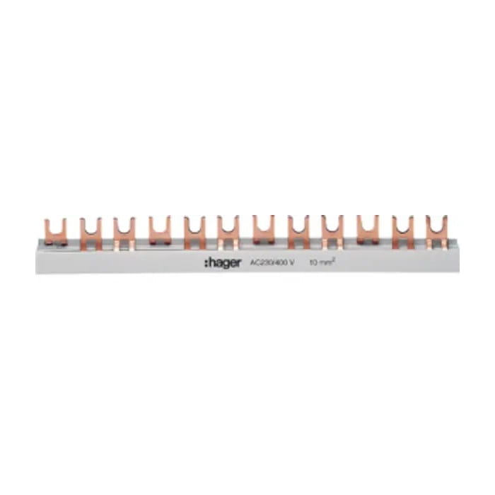 Anslutningsräl 3-polig 57mod 10mm2, KDN363B gaffel Hager Kopplingsskenor används för att överbrygga ström eller ansluta produkter till varandra. Valet av rätt typ av buss beror på typen av enhet, på grund av skillnader i fysiska parametrar.