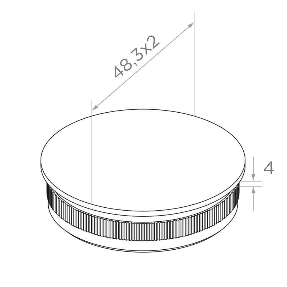 Avslutet monteras genom att slå in den räfflade fästdelen i rörets insida. Räfflingen säkerställer varaktig och säker fastsättning utan risk för oavsiktligt lossning. Elementet är dedikerat för balustradsystem baserat på rör Ø 48,3 mm — en av de mest använda standarderna för baluster av rostfritt stål. Fungerar perfekt som avslutning av övre handledare, vertikala stolpar och andra konstruktionselement för baluster inomhus och utomhus.
