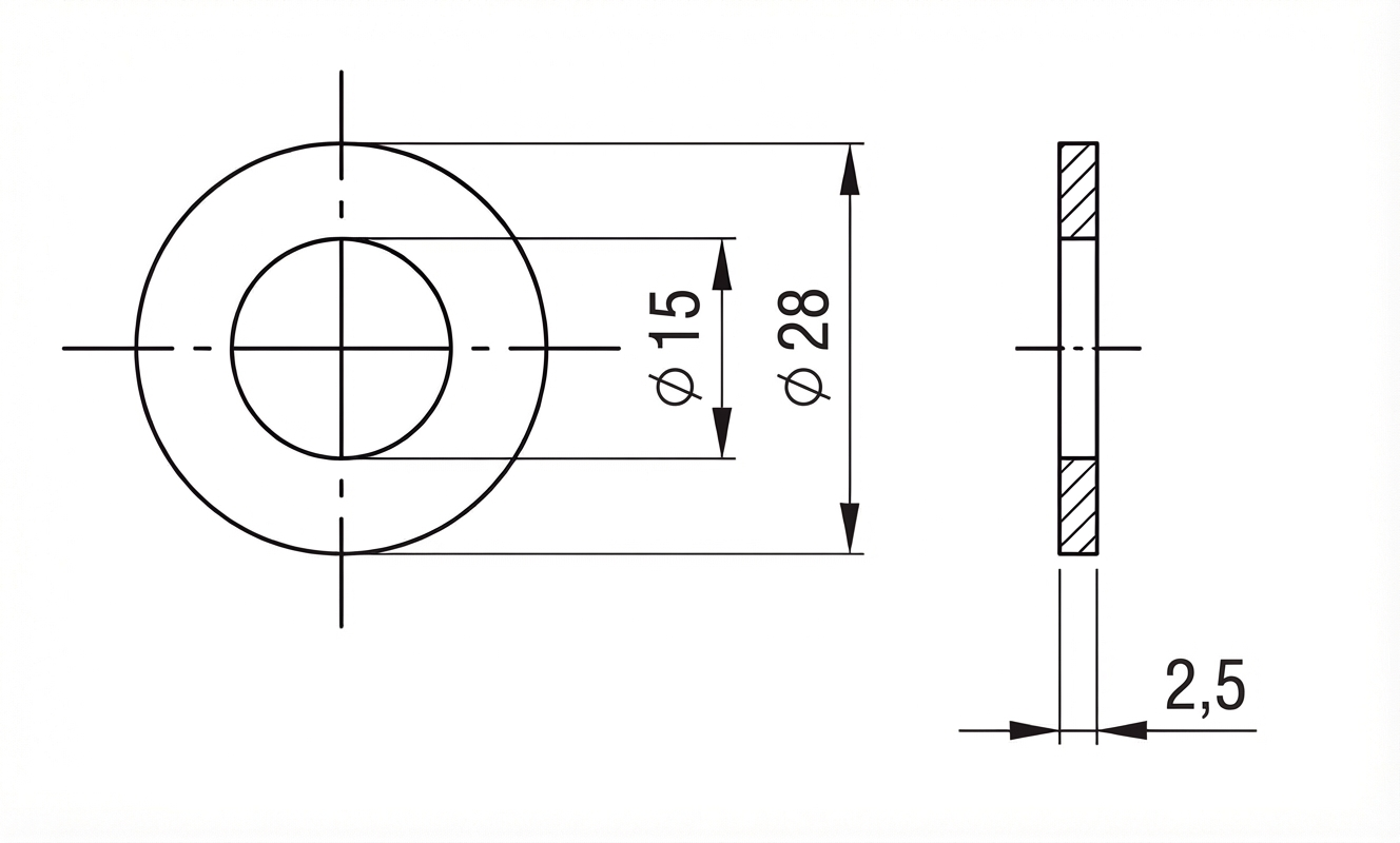 - Norm: DIN 125 (ersätter ISO 7089/7090)