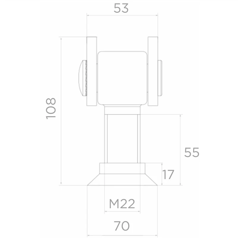 COMUNELLO justerbart gångjärn M22 är en robust belagsdel avsedd för montering av flugliga grindar och portar i stängselpelare. M22-gängan säkerställer solid förankring i pelaren, och gångjärnets konstruktion möjliggör flerdimensionell justering av grindflygeln efter slutförd montering — vilket avsevärt påskyndar justering och eliminerar behovet av demontering.