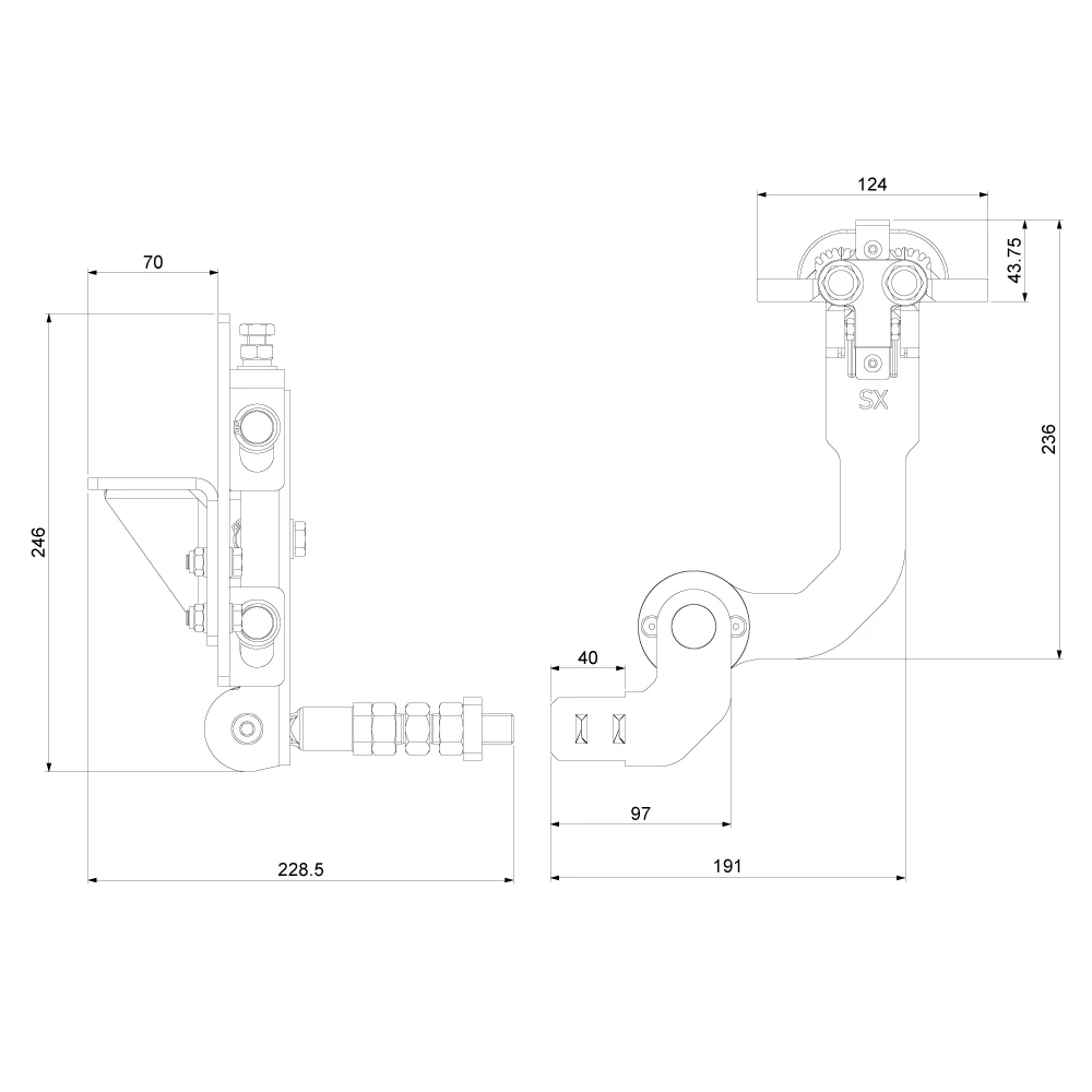 - Fästets totala höjd: 246 mm