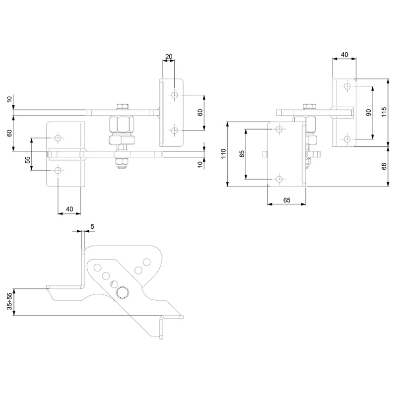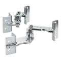 Comunello RS-100F är en komplett skruvmonterad gångsjärnsats, speciellt utformad för montering av flygeldsgrindar på stigande sluttningar. Tack vare den excentriska skruven som förbinder flygelstödet med leden får installatören möjlighet till precis justering av flygelns position — att ställa in den i horisontellt läge och perfekt justering med stolpen, även på ojämn terräng.