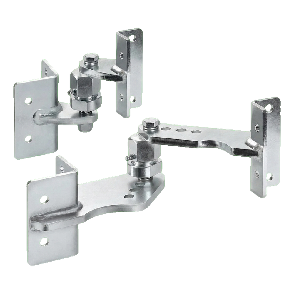Gångsjärnen lämpar sig för fästning på både stål- och betongstolpar, vilket gör dem till en universell lösning för olika typer av staket. Elektrolytisk galvanisering ger korrosionsbeständighet, och smörjnipplarna möjliggör regelbundet underhåll utan demontering — vilket resulterar i lång livslängd och felfri drift av grinden.
