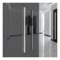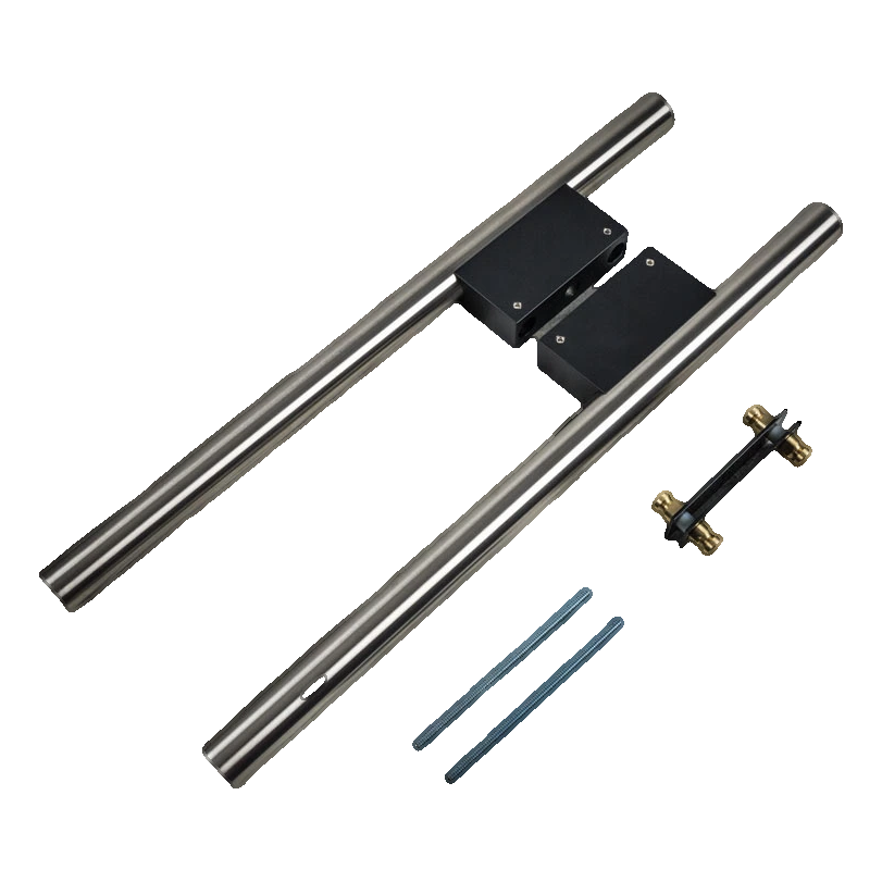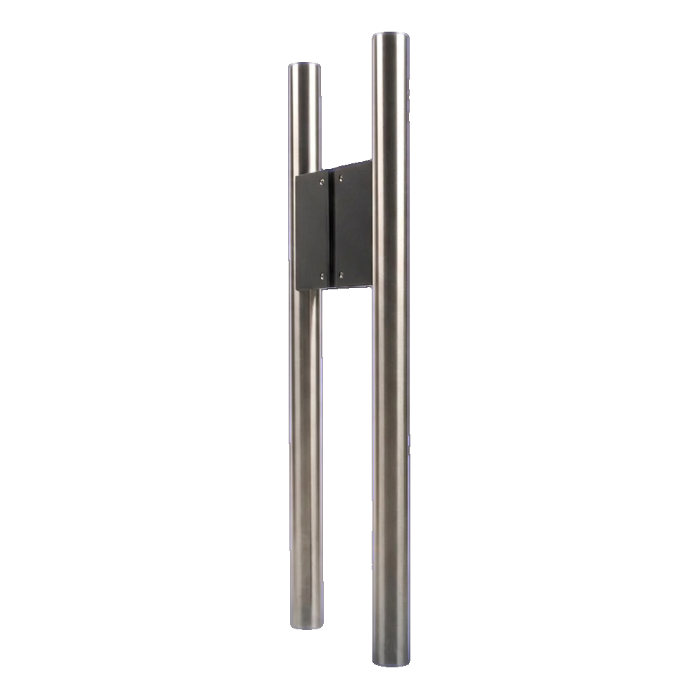 Dubbelsidigt dörrhandtag med diameter 30 mm och längd 500 mm, tillverkat helt i rostfritt stål AISI 304 med satinerad finish. Det eleganta svarta pulverlackerade aluminiumfästet ger handtaget en modern, minimalistisk karaktär. Universell montering i satsen gör det möjligt att montera handtaget på glas-, trä- och metalldörrar — en lösning för många typer av installationer.