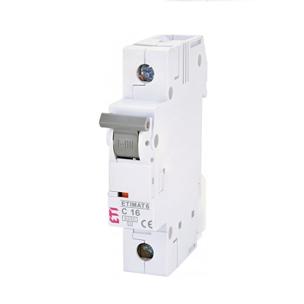 Överströmsbrytare C 16A 1P 6kA ETIMAT6 002141516 av ETI, populärt kallad "överströmsenhet", är en enhet som är utformad för att skydda installationen från effekterna av kortslutningar och överbelastningar. Det är en nyckelkomponent i elinstallationen som bryter elflödet i en nödsituation och garanterar hela installationens säkerhet.