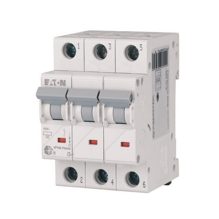 C 63A 3P 6kA överströmsbrytare HN-C63/3 xPole Home 194897 EATON skyddar den elektriska installationen mot överbelastning och kortslutning.