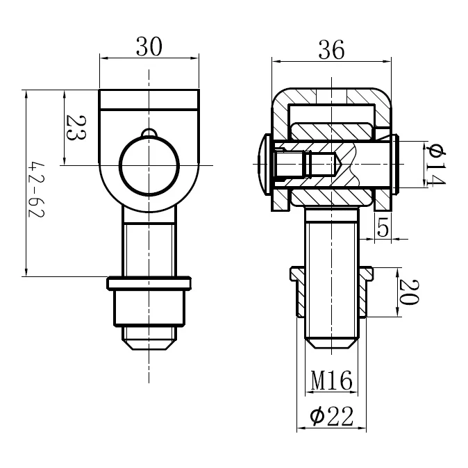 Justerbart stålgångjärn M16 för insvetsning — ett robust monteringselement avsett för grindflyglar. Den förzinkade konstruktionen med svartlackerat stålöga ger korrosionsskydd och ett estetiskt utseende, och den inbyggda justeringsmekanismen möjliggör exakt inställning av grindflygeln utan att behöva demontera den.
