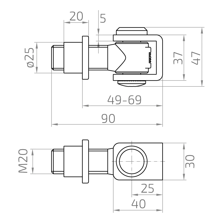 Justerbart insvetsningsgångjärn med gänga M20 — ett robust monteringselement dedikerat för tvåbladsgrindar. Konstruktionen med justeringsmutter möjliggör exakt vågrätt inriktning av grindlövet efter att svetsningen är klar, vilket avsevärt förkortar efterbehandlingstiden och eliminerar behovet av demontering.