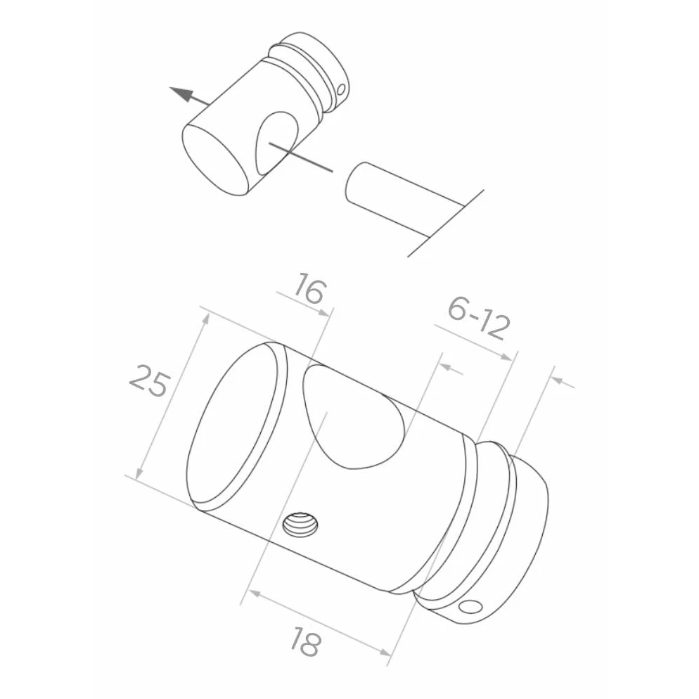 Genomgående fäste för stång fi 16 mm med punktfäste för glas
