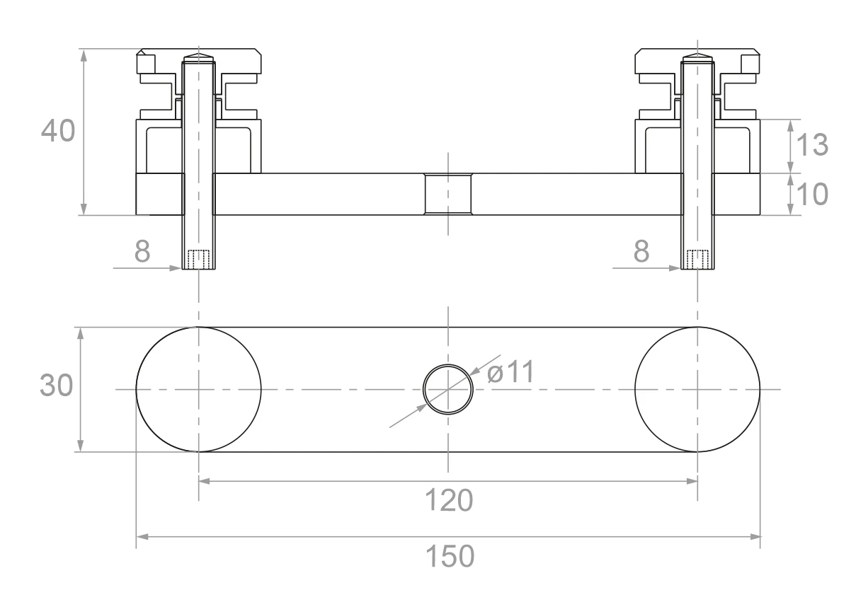 Glasfäste dubbel fi 30 L=150 mm – rostfritt stål AISI 304 satin