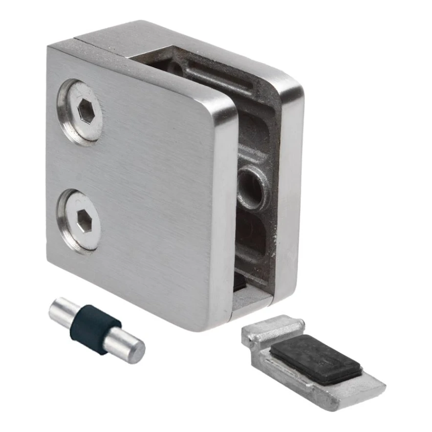 Glashållare 45x45x26 mm med pinstöd glas 6–10,76 mm AISI 304 plant system satin