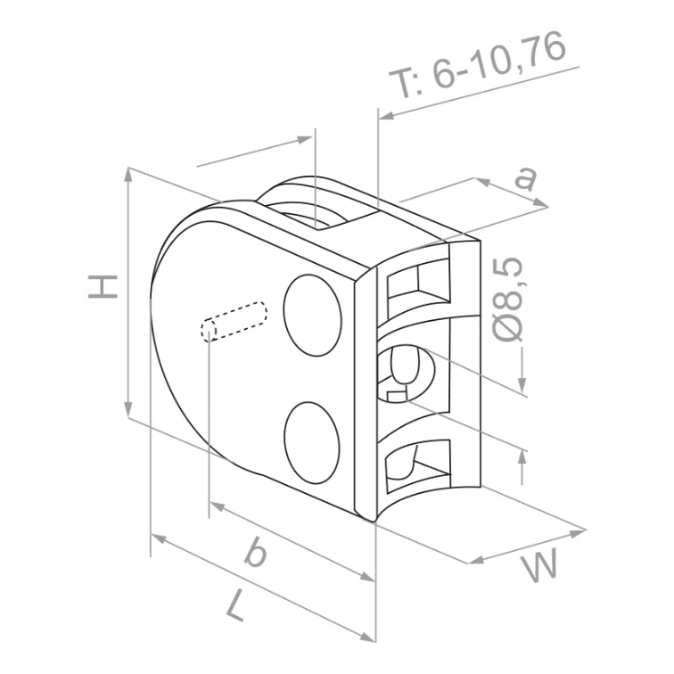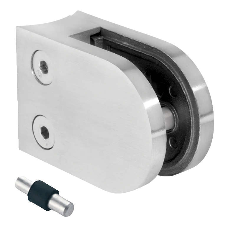 Glashallare i rostfritt stal AISI 304 med polerad finish (spegelblank), avsedd för montering av glasskivor med tjocklek fran 6 till 10,76 mm pa rör med diameter 42,4 mm. Den kompakta konstruktionen med medföljande säkerhetspinne ger ett säkert och estetiskt fäste för glasskivor i räcken, uterum och avskärmningar.