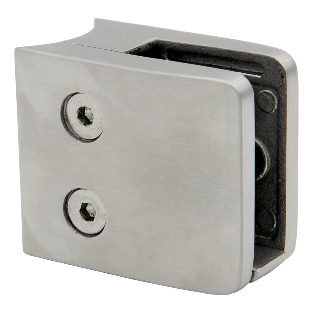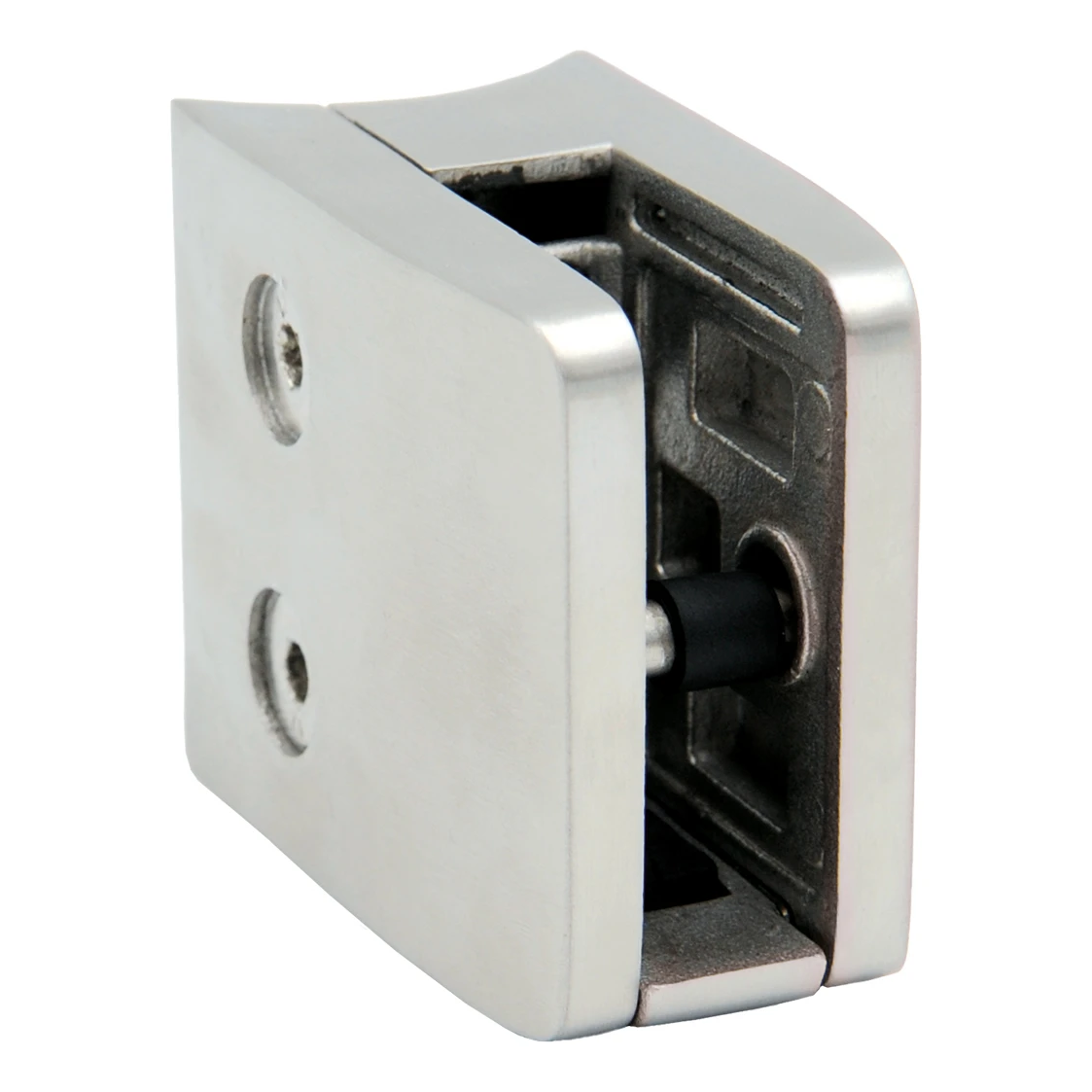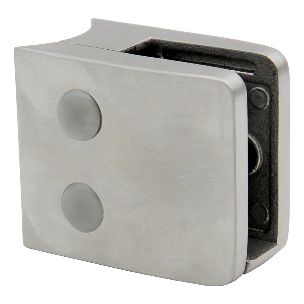 Rektangulär glashållare med konsol och säkerhetsstift, avsedd för professionell montering av glaspaneler på rör med diameter 42,4 mm. Tillverkad av rostfritt stål AISI 304 med satinfinish — ger ett estetiskt, modernt utseende och hög korrosionsbeständighet, vilket gör den lämplig för användning både inomhus och utomhus.