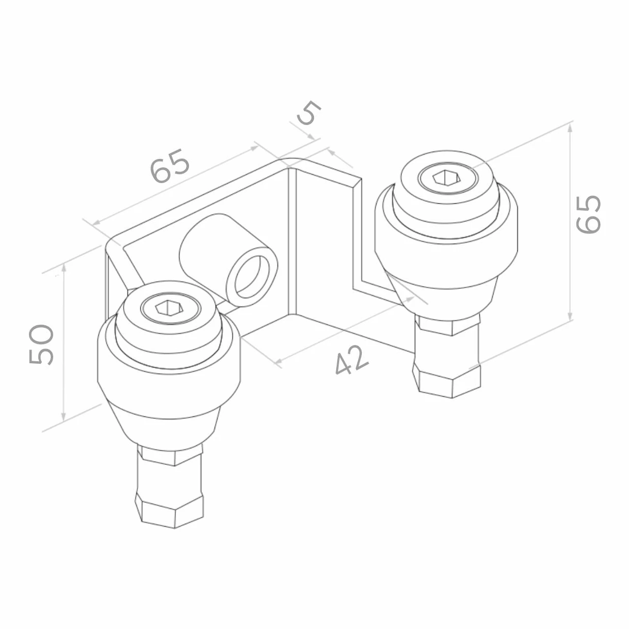 Övre grindhållare med gummerade rullar – avstånd 42 mm