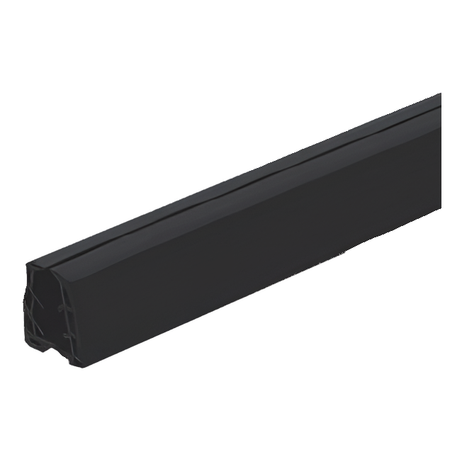 Tätningen klistras in inuti handtaget längs hela dess längd. Levereras i sektioner om 2500 mm (2,5 m) längd, vilket möjliggör bekväm anpassning till standardelement för räcken. Profilen i svart färg komponerar diskret med typiska aluminium- och stålhandtag som används i helglasräcken.