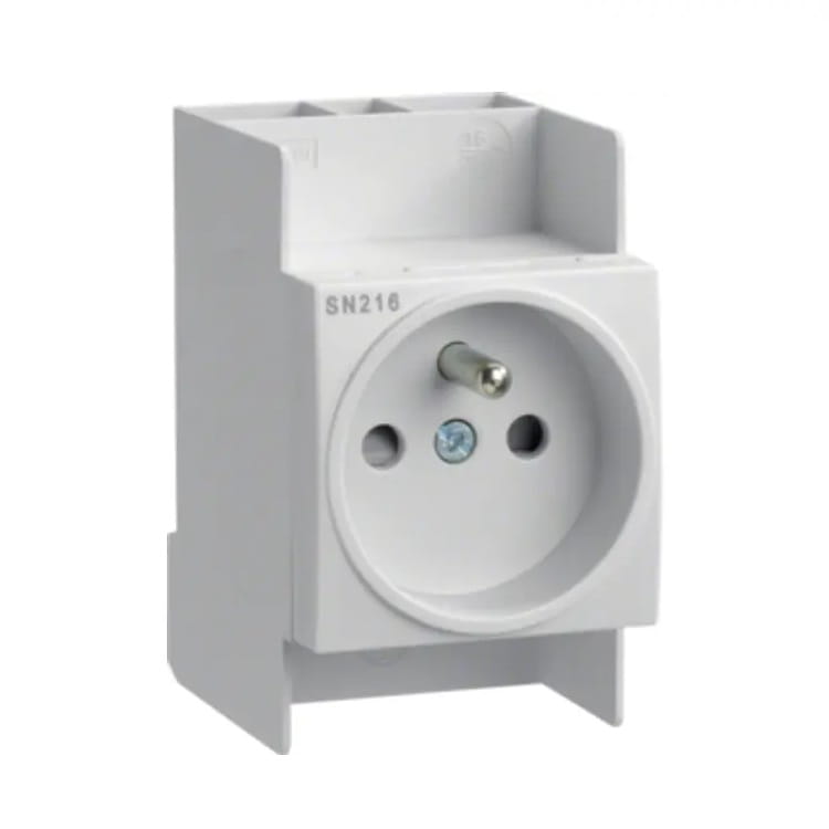Skenuttag DIN 10-16A 250V med jordstift SN216 HAGER är en funktionell anordning som gör att el kan användas även om strömförsörjningen till kretsen är frånkopplad.
