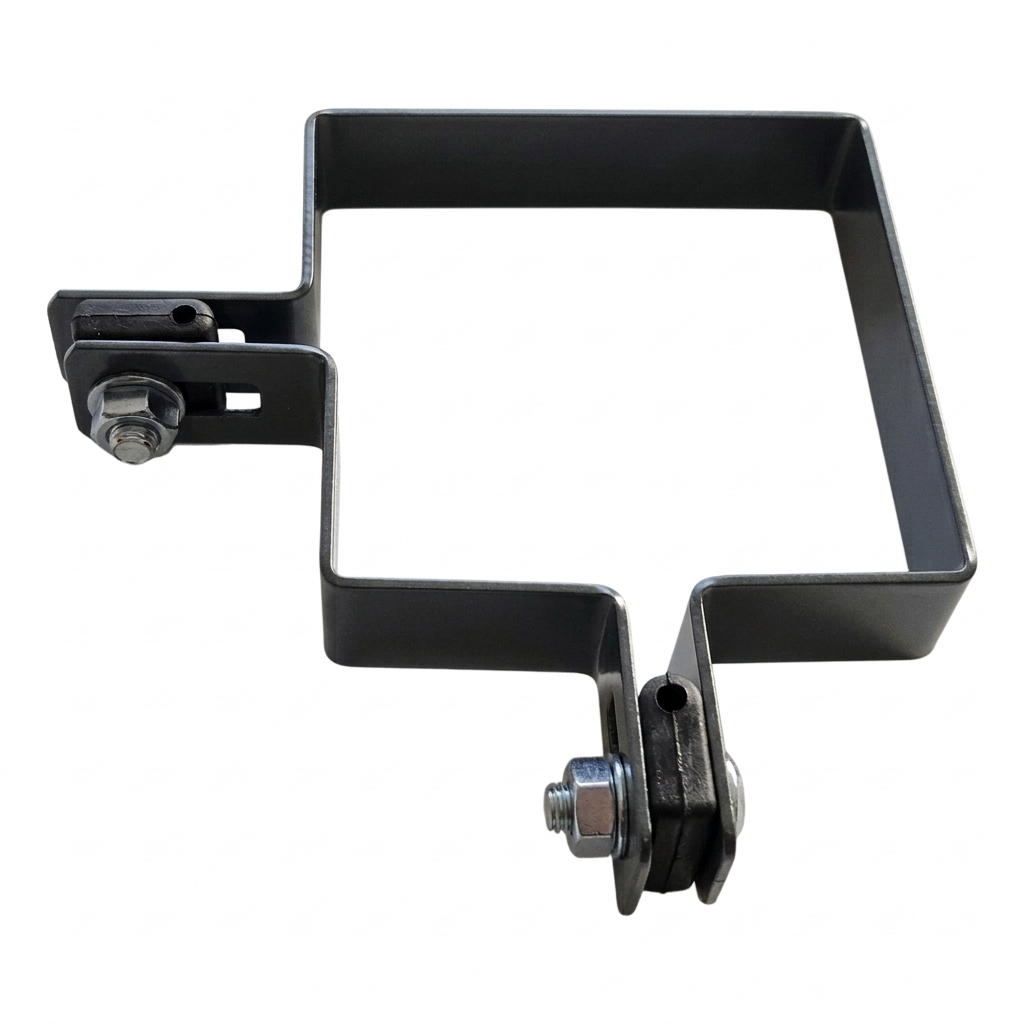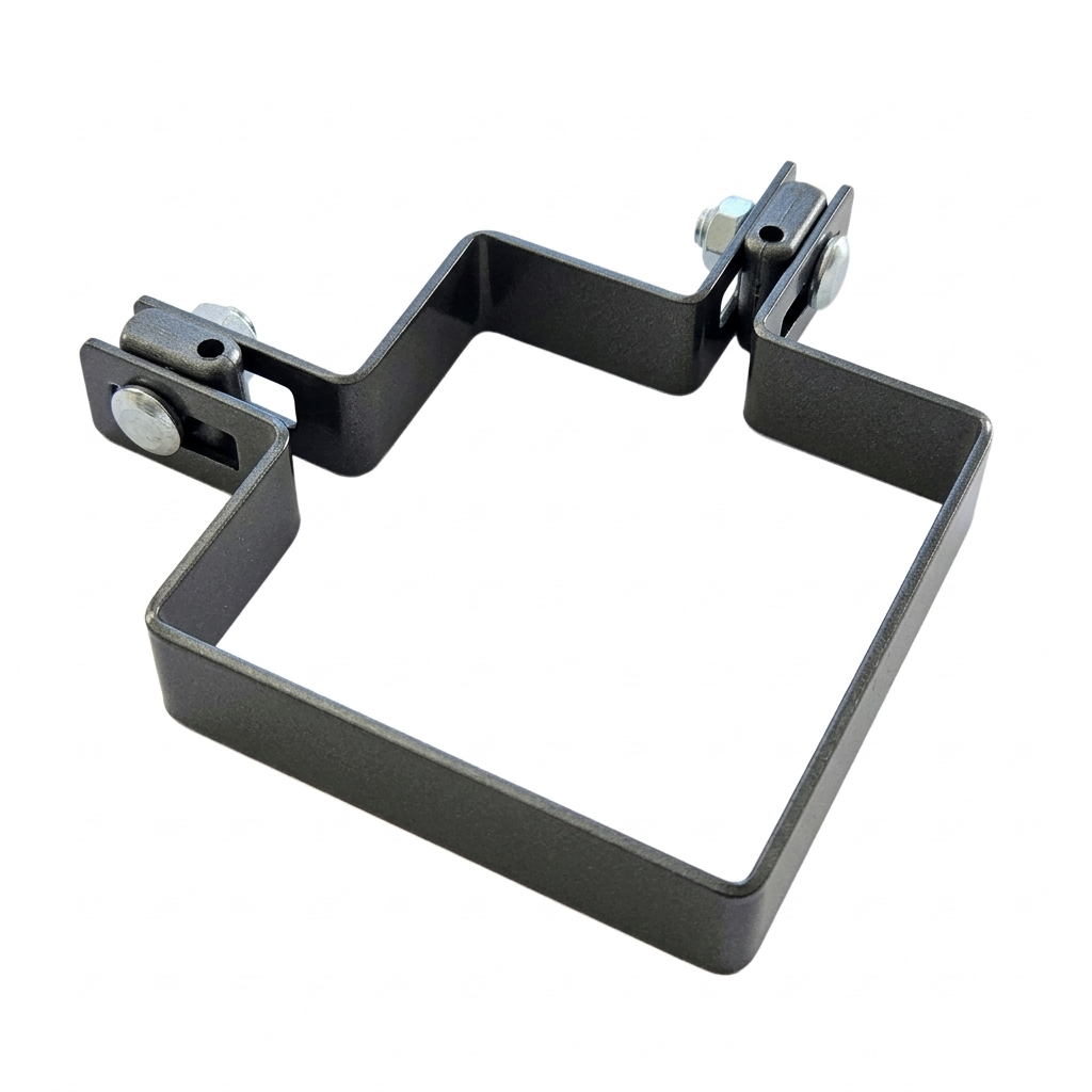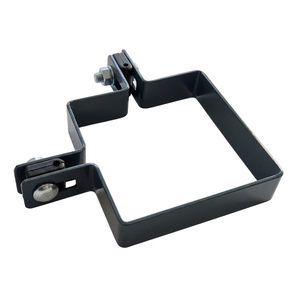 Klämmorna är perfekt anpassade för pelarens tvärsnitt 100×100 mm, vilket garanterar stabil och säker förbindning av stängelkonstruktionen. Monteringshålen i bönform möjliggör positionsjustering av panelen i förhållande till pelaren — underlättar utjämning av stängslet även på ojämn mark.