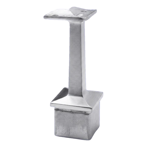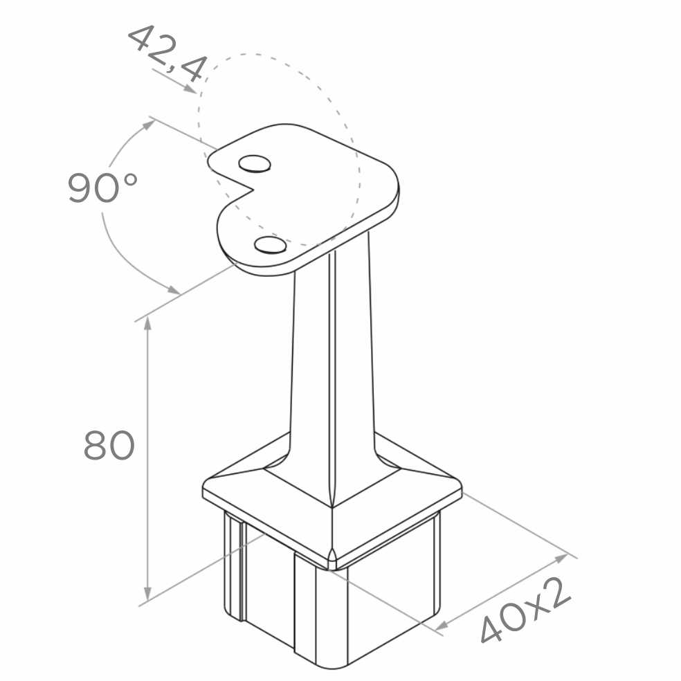 Stödet är dedikerat för hörnförbindelser av handledare med fyrkantiga stolpar i 40×40 mm systemet. Fungerar väl i inomhus- och utomhusräcken — i trapphus, på terrasser, balkonger och i mezzaniner. Satinfinishen på det rostfria stålet förstorar visuellt rummet, ger naturlig belysning och harmoniserar väl med moderna arrangemang.