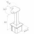 Hörnutstöd för handledare avsett för räckesystem med fyrkantiga stolpar 40×40 mm. Elementet förbinder stolpen med rund handledare med diameter 42,4 mm i en 90° vinkel, vilket skapar en hållbar och estetisk hörnförbindelse. Tillverkad av högkvalitativt rostfritt stål AISI 304 i satinfinish — korrosionsbeständigt och lätt att hålla rent.