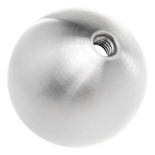 Kulan är ihålig invändigt, vilket håller den lätt (0,23 kg) trots solid konstruktion med väggtycklek på 2 mm. Satinytan harmoniserar vackert med typiska element i rostfria räcken — stolpar, handtag och kopplingar. Produkten är idealisk som dekorativt avslut på stolpe eller handtag på räcke och höjer estetiken för hela installationen.