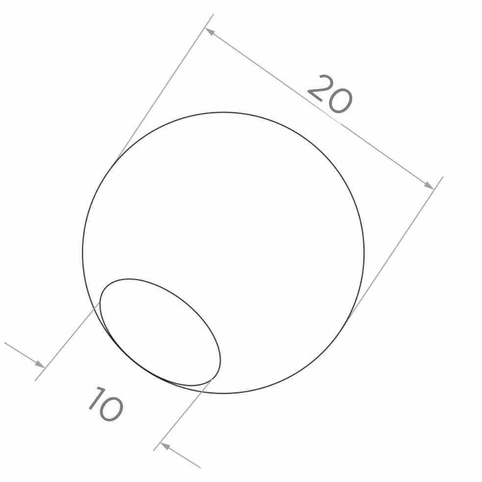 Inklistrande balustradkula fi 20 mm, hål fi 10 mm, rostfritt stål AISI 304 satinerad