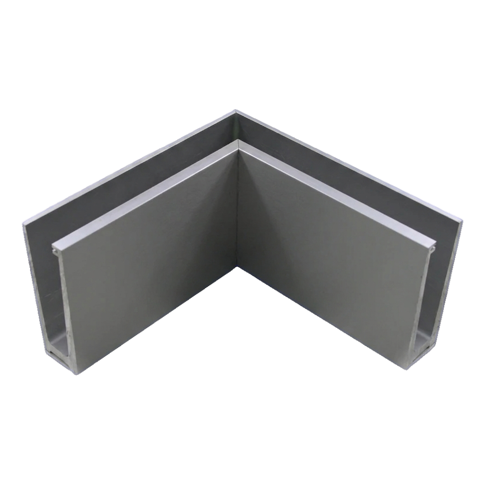 Inre hörnprofil av aluminium avsedd för byggande av helglasräcken (stolpfria) med montering ovanifrån. Möjliggör precis utförande av 90° vinkel på inre hörn, vilket säkerställer en estetisk och tät fog mellan två glasskivor. Satinfinishen på aluminiumet imiterar perfekt rostfritt stål, vilket gör att räcket framstår som modernt och elegant utan behov av dyrare material.