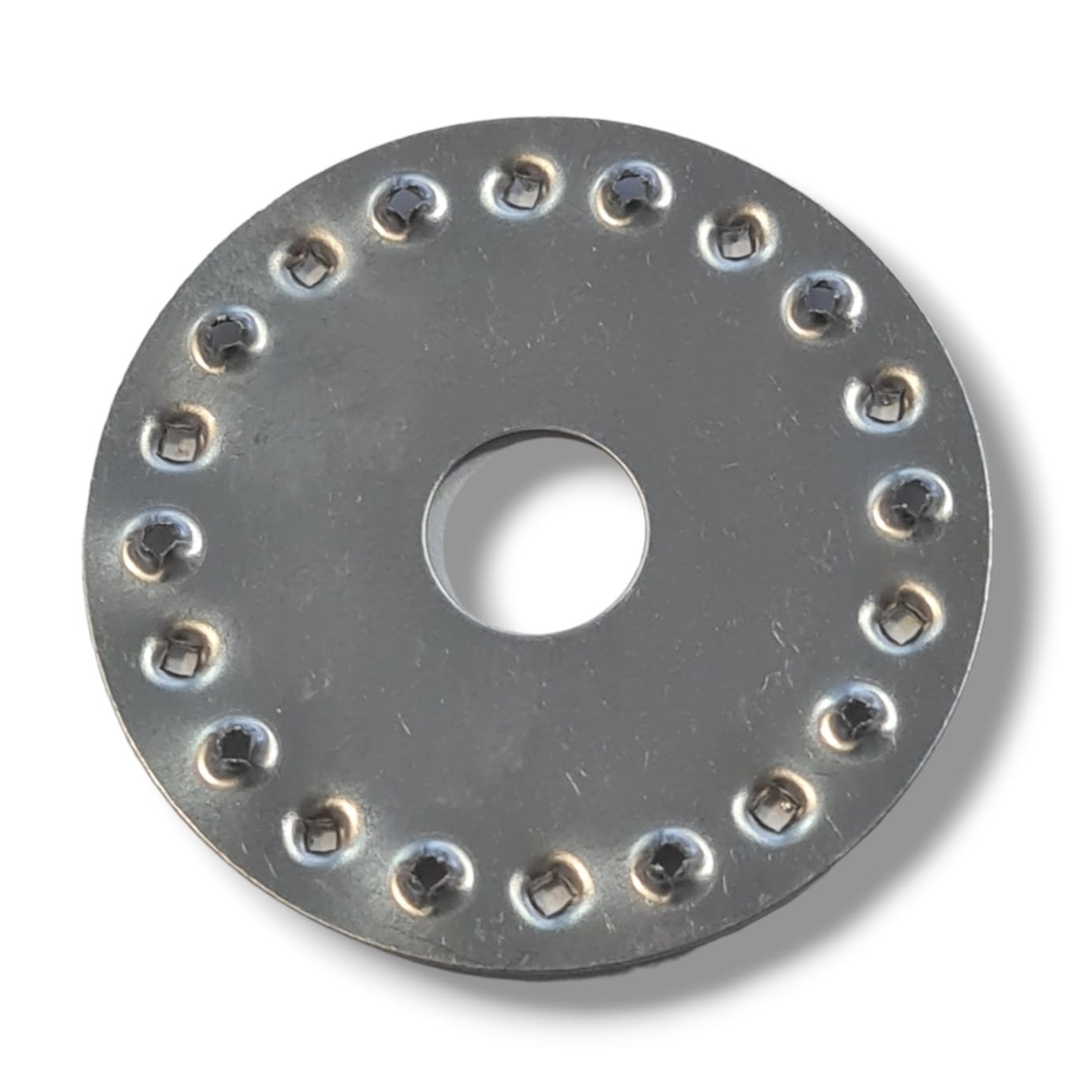 Jordningsbricka variant III hel rund. Tillverkad av rostfritt stål A2 1.4301, Ø35mm, för solcellssystem.