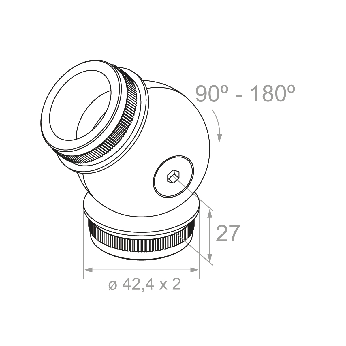Justerbar kulledskoppling 90°–180° för rör Ø 42,4 mm – rostfritt stål AISI 304 satinfinish