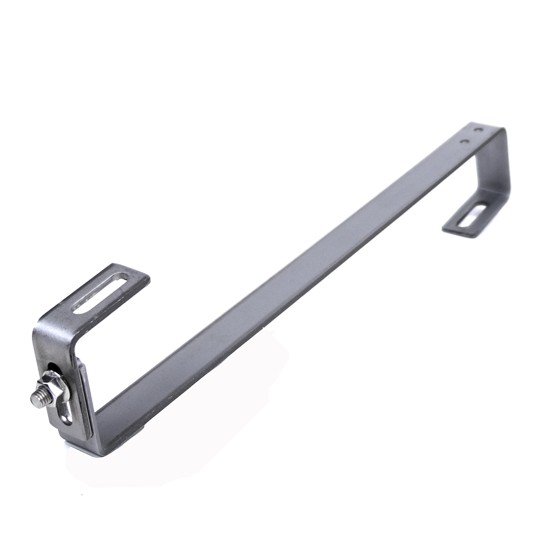 Justerbar takkrok S för sluttande tak, rostfritt stål 1.4016 med dimensioner 470x30x4 mm med M10-hål för profil till solcellssystem.