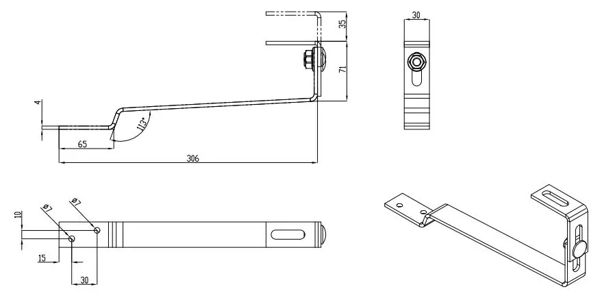 Takkrok för tak täckta med karptegel, rostfritt stål 1.4016, 306mm M10 för solcellssystem.