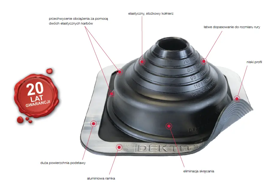 Lämplig för kabelgenomföringar garanterar professionell tätning på tak och fasader. Tätningsmanschettens flexibla kropp kompenserar för termiska längdförändringar.