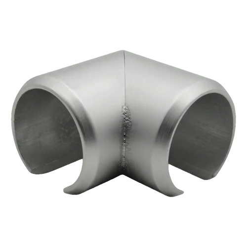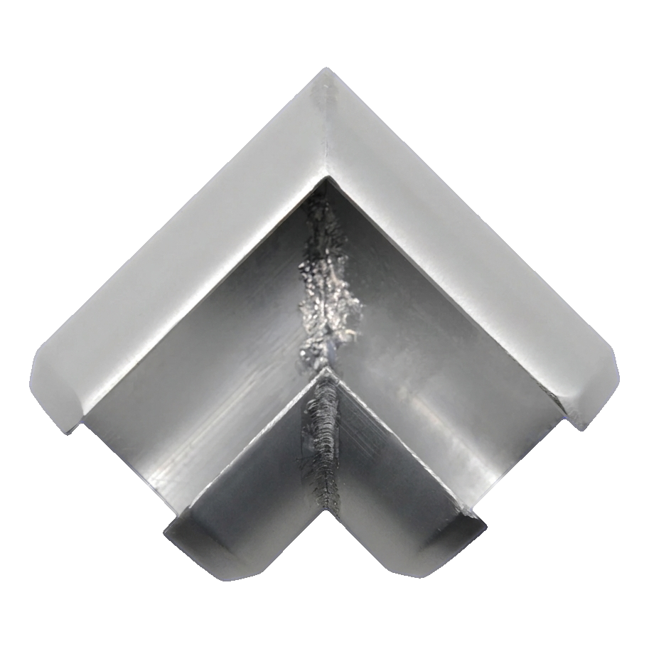90° vinkeln Kozza är en precisionstillverkad hörnkoppling avsedd för byggande av handledare- och räckesystem med runda aluminiumgrepp med diameter fi 40 mm. Möjliggör estetisk och stabil förbindning av två greppsektioner i rät vinkel — idealisk för hörn av trappor, terrasser, balkonger och mezzaniner.