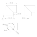 Kozza – 90° vinkel för runt aluminiumräckegrepp fi 40 mm, matt anodiserad