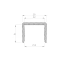 Tätningsprofilen har en U-form och läggs direkt på glasskivans kant, varefter hela enheten skjuts in i aluminiumfästet. Tack vare den lätta avsmalnande öppningen nedtill (21,5 mm) i förhållande till den inre bredden upptill (22 mm) griper tätningen säkert tag i glaset och glider inte av under monteringen.
