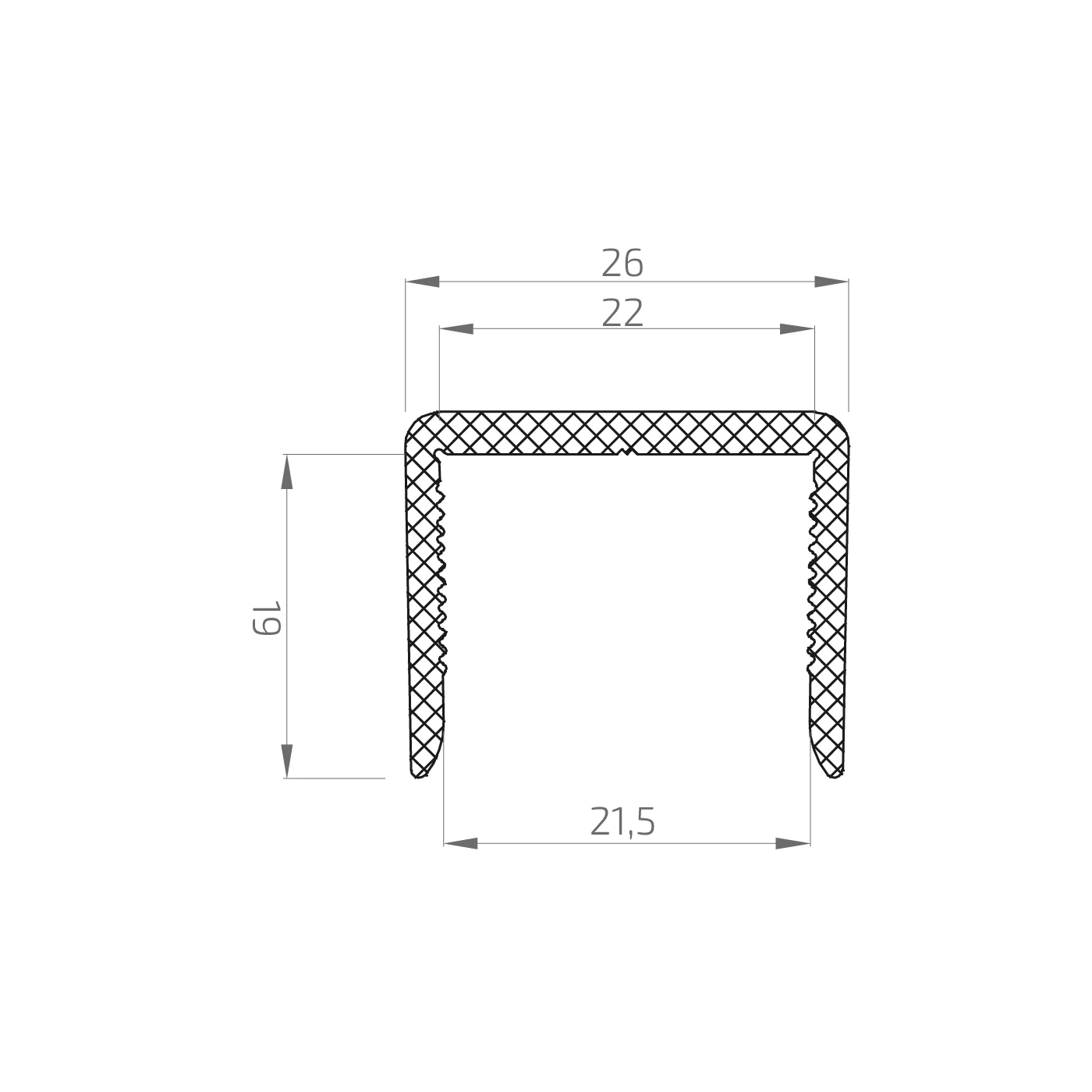 - Inre bredd (topp): 22 mm