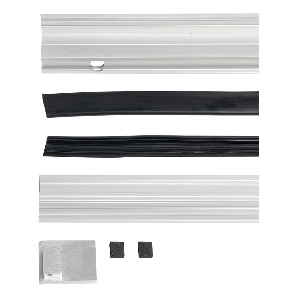 - Två aluminiumprofiler med fabriksberedda monteringshål