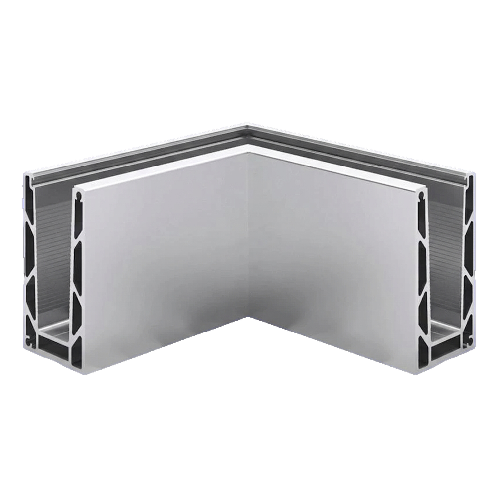Kozza KE100 – yttre U-profil 90° hörn för helglasräcken, aluminium, matt anodiserad
