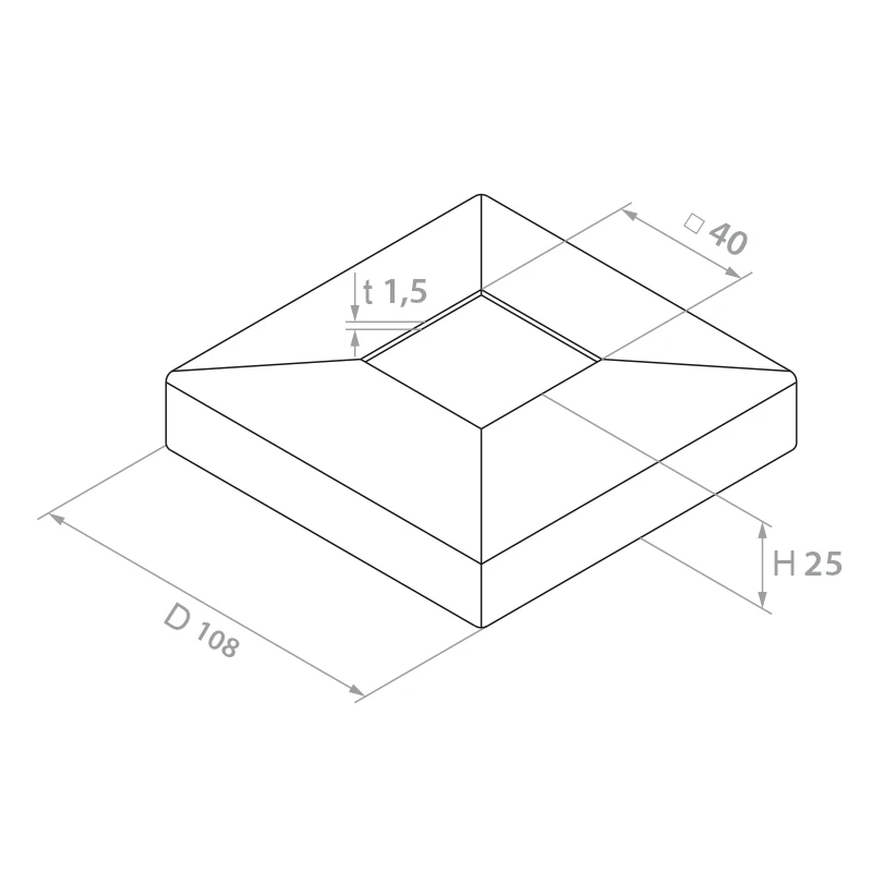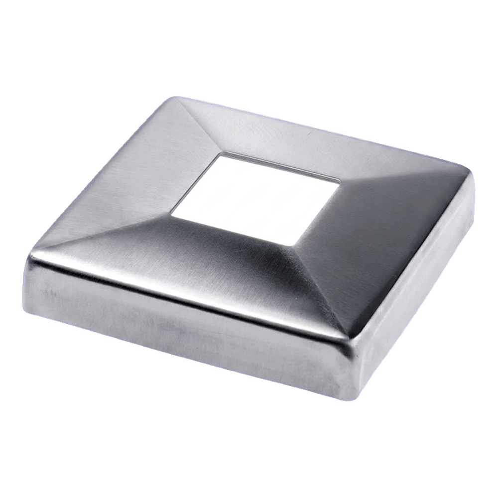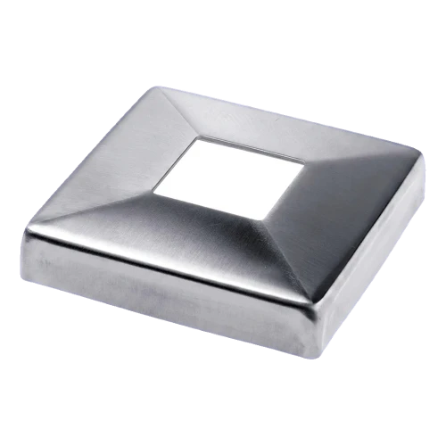 Kvadratisk täckrosett 108×108 mm för räckeprofil 40×40 – rostfritt stål AISI 316 satinerad