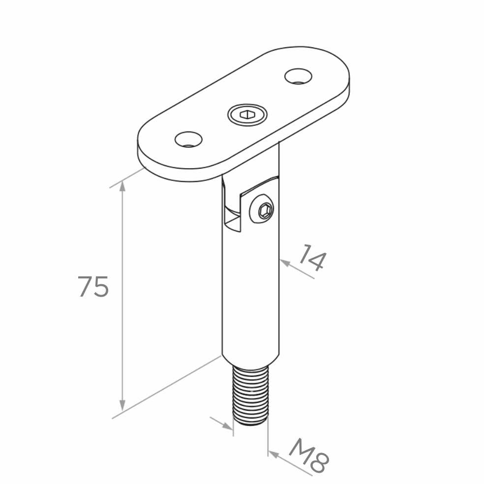 Ledstång för räckesstöd fi 14×75 mm med platt plåt – AISI 304 satin, gänga M8