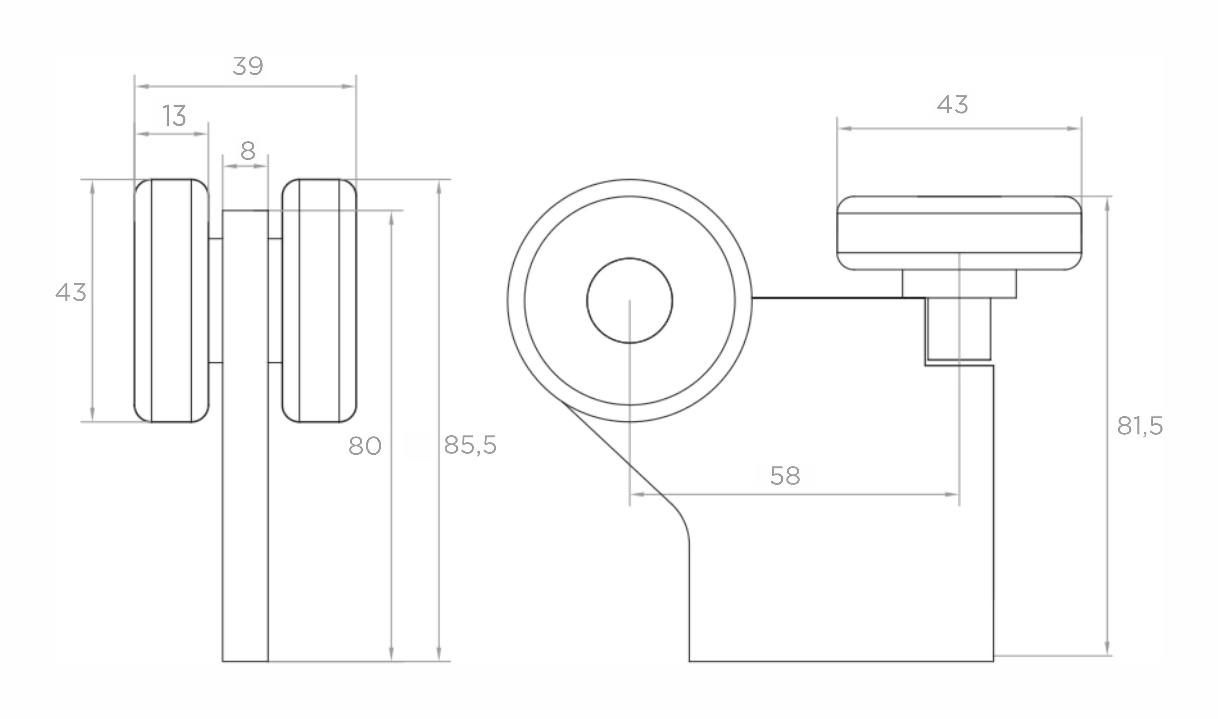 - Axelavstånd (vertikala–horisontellt hjul): 58 mm
