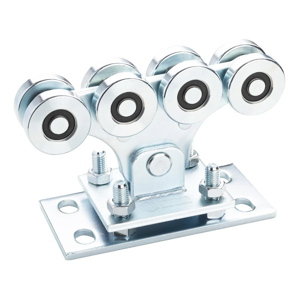 Löpvagn 68 är en nyckelkomponent i skjutgrindsystemet 68×68, ansvarig för mjuk, tyst och stabil styrning av grindflygeln längs löpskenan. Utrustad med 8 stålrullar fördelade på två nivåer säkerställer den jämn lastfördelning och eliminerar snedkrafter på lagren — vilket direkt bidrar till längre livslängd och lägre ljudnivå under drift.