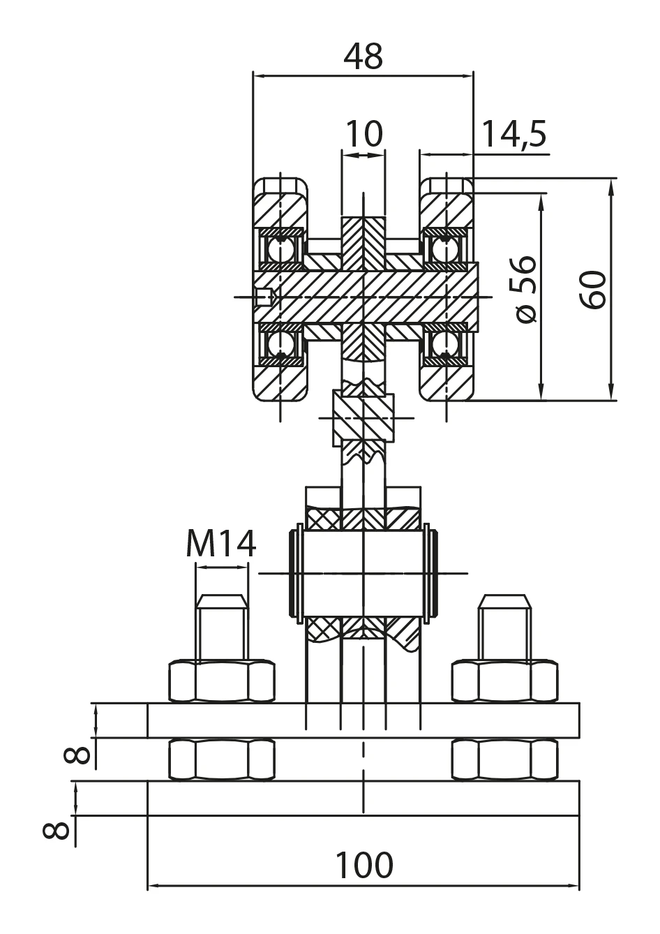 Löpvagn 68 för skjutgrind – 8 stålrullar, system 68×68