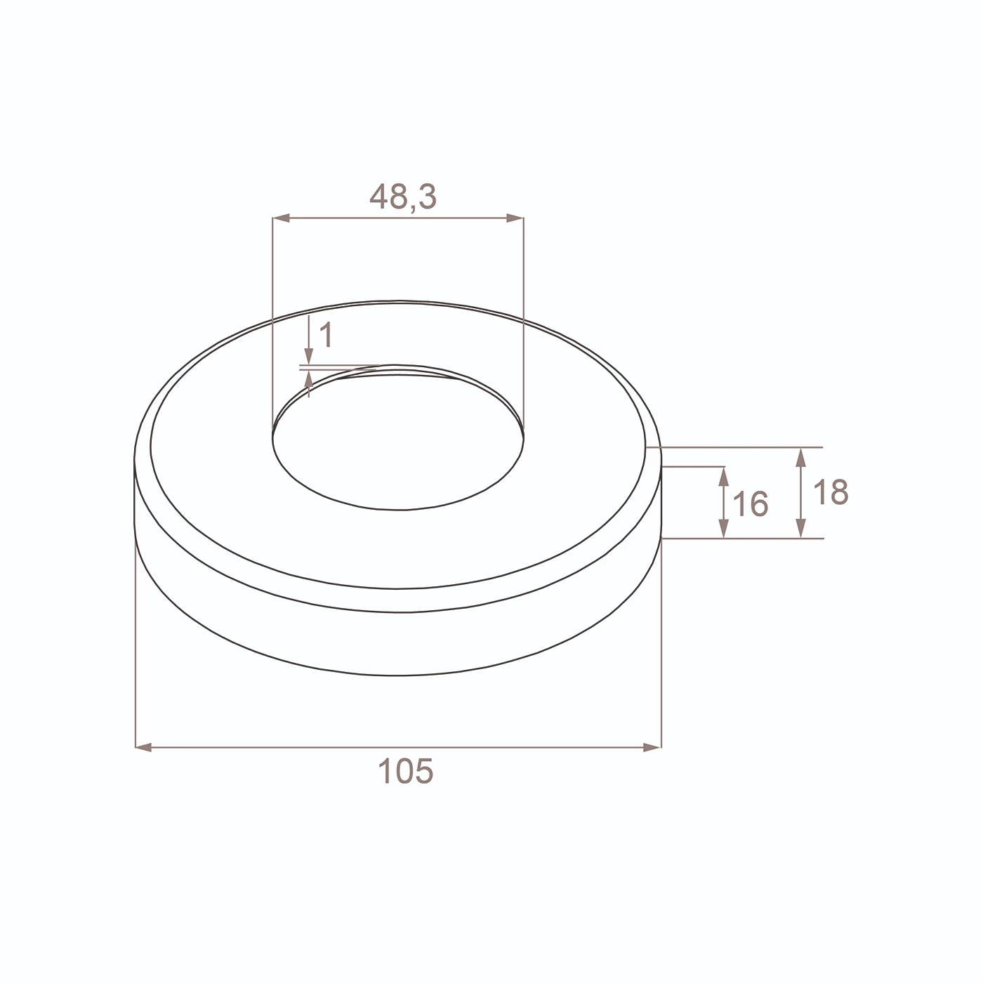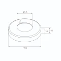 Den kompakta formen med ytterdiameter 105 mm och höjd på endast 18 mm gör att rosetten diskret smälter in i konstruktionen utan att dominera visuellt. Väggstjockleken 1 mm garanterar lämplig styvhet vid låg vikt — elementet väger endast 0,09 kg, vilket underlättar monteringen och belastar inte konstruktionen.