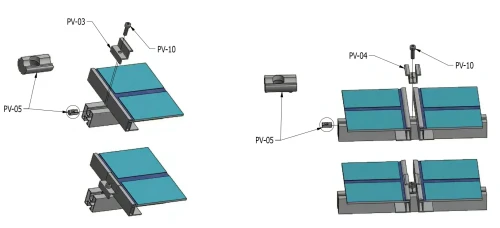 Tryckklämma eller centrumklämma är en monteringskomponent för solcellsinstallationer och används för att fästa solcellspanelen på konstruktionsprofilen av aluminium. Den används för montering av fotovoltaiska paneler på både platta och lutande tak.