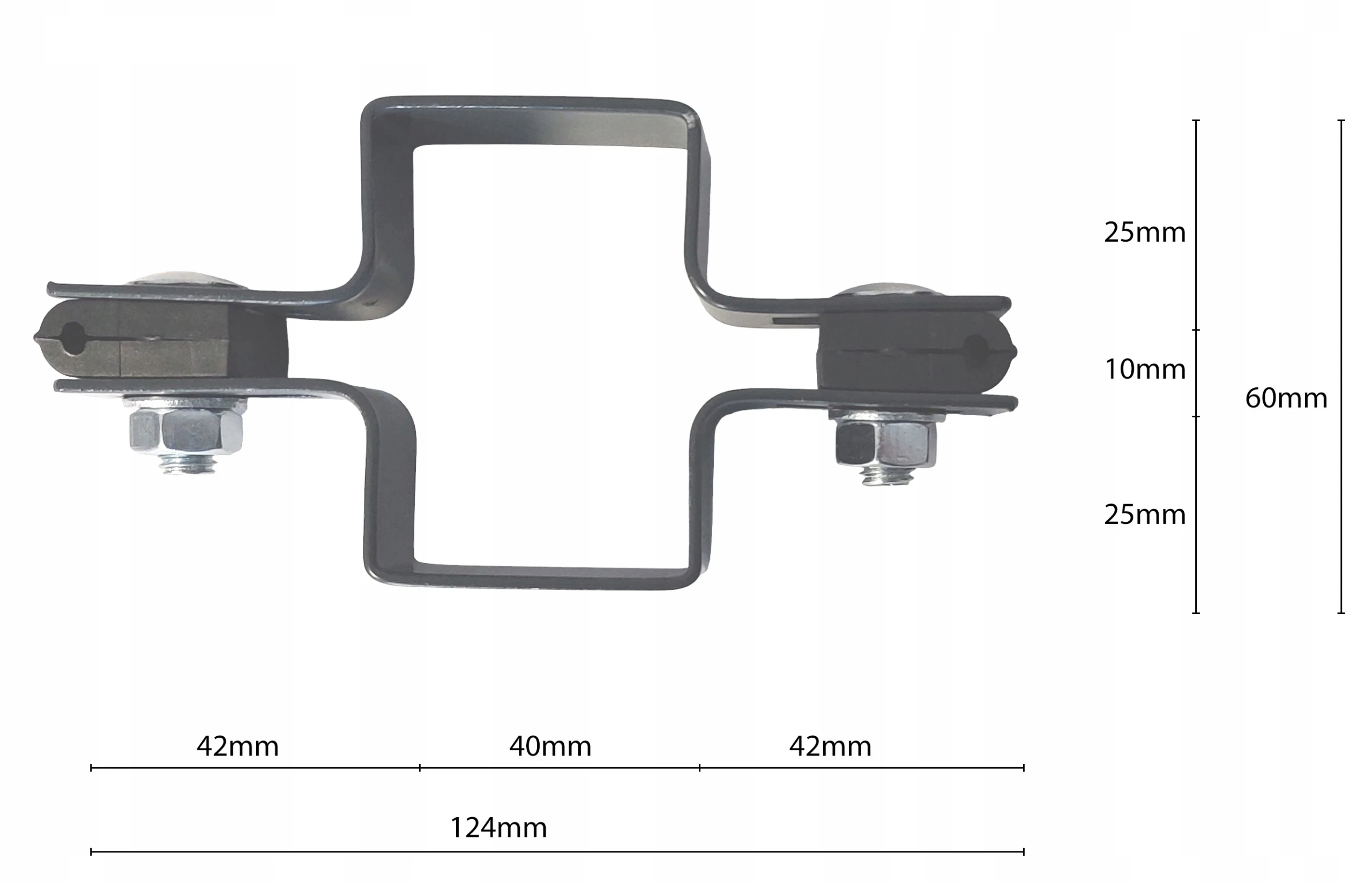 Mellanklamma 40x60 mm är ett pålitligt konstruktionselement som används för montering av stängselpaneler till stolpar med tvärsnittet 40x60 mm.